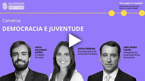 Videos Individuais Carla Rodrigues, Leonor Wicke – A porta está aberta: sair atrás dos sonhos ou ficar? Pedro Oliveira, Melissa Figueiredo, Luís Vasconcelos – Linkdean, The new generation of leaders Sofia Pereira, João Pedro Louro, Vasco Galhardo Simões – Democracia e juventude ver mais vídeos Backdrop Ver Fotos Evento Ver Fotos Coffee-Break Ver Fotos Sunset Ver Fotos Sponsors Ver Fotos Conheça os Oradores Carla Rodrigues Secretária de Estado Adjunta da Juventude e da Igualdade Nuno Piteira Lopes Vice-Presidente da C.M. de Cascais Pedro Oliveira Dean da Nova SBE Thiago Barrionuevo CEO e Founder da Cuboo Steve Morrison Talent Acquisition Manager da Tech da Signal AI Felso Ganhane Global Shapers World Economic Forum Joon Baek Founder Youth For Privacy na Engineer Google Vasco Galhardo Simões Fundador Eu voto João Pedro Louro Presidente da Juventude Social Democrata Sofia Pereira Secretária Geral da Juventude Socialista José Milhazes Jornalista e Comentador Político Maria Castello Branco Analista Política da CNN Portugal Luís Vasconcelos Estudante do 12ºano Melissa Figueiredo Estudante do 12º ano Sérgio Cardoso Chief Education Officer e Administrador da Academia Doutor Finanças Leonor Wicke Coordena Editorial da revista Líder Filipe Vaz Diretor-Geral da Tema Central MJVC @mjcvnonstop Bailarino Catarina Silva Cidade FM Rita Lima Sustainability Analyst da Zurich Dj Zecka Pinheiro Dj